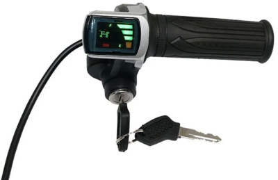 Ручка газа с ключом и вольтметром для электровелосипеда (черный с серебристым)