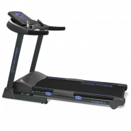 Тренировочный компьютер оснащен цветным дисплеем диагональю 6.5 дюйма (16.5 см.) с отображением программных профилей. В число самих программ входят 24 режима, направленных на решение самого широкого спектра задач – от развития силы и выносливости до снижения веса и улучшения сердечно-сосудистой системы. Помимо предустановленных программ, можно воспользоваться самостоятельно регулируемым ручным режимом, а также создать собственную программу в одном из 4-ех пользовательских режимов. Есть здесь и 2 пульсозависимые программы с предустановленными значениями 65% либо 85% от целевого максимального пульса. Для точного определения пульса и просто комфортной тренировки в компьютер встроен высокоточный беспроводной приемник. К другим особенностям дорожки относятся гидравлическая система складывания easyFOLD™, которая существенно облегчает складывание дорожки, а при раскладывании обеспечивает медленное опускание полотна в последней фазе, гарантируя легкость и безопасность. Мультимедийная компонента представлена динамиками 5 Ватт и входом USB для проигрывания музыки с USB накопителя или смартфона. Перемещение дорожки происходит за счет 2-ух транспортировочных роликов. Выровнять положение тренажера относительно поверхности можно за счет компенсаторов неровностей пола.
